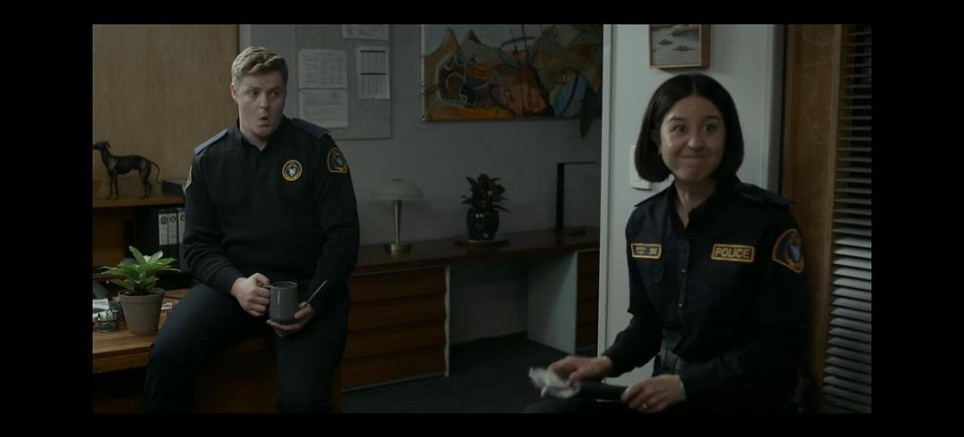 先看肢体语言,男警是震惊,女警是开心